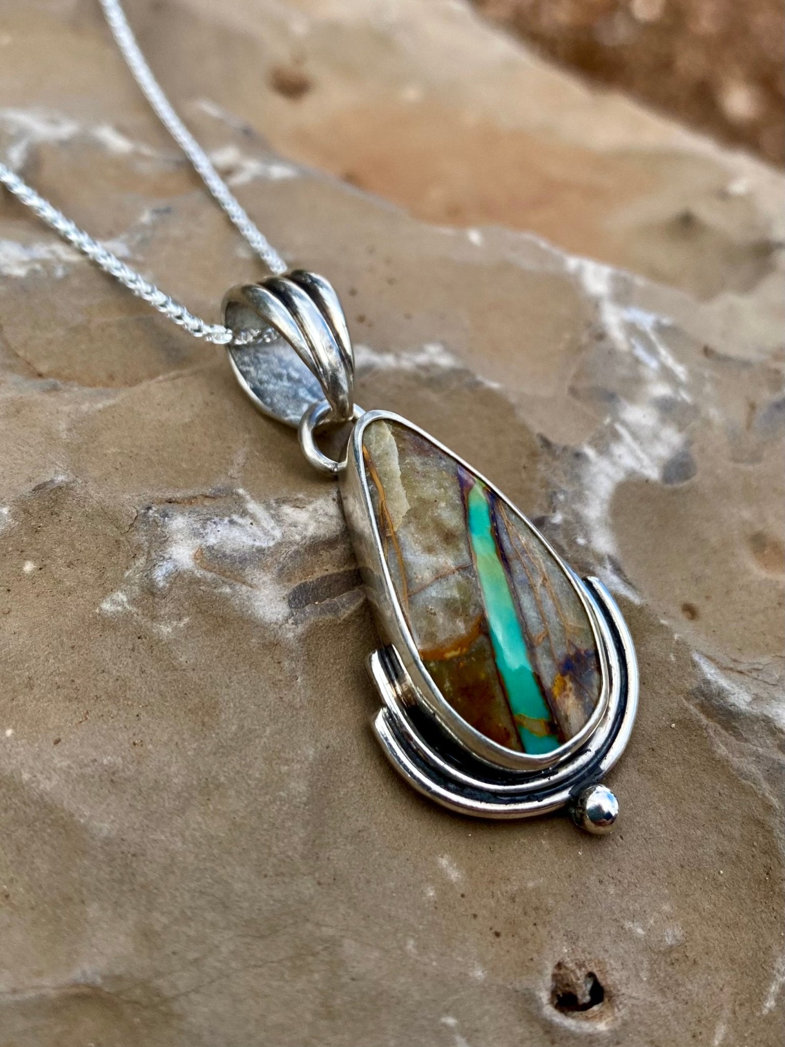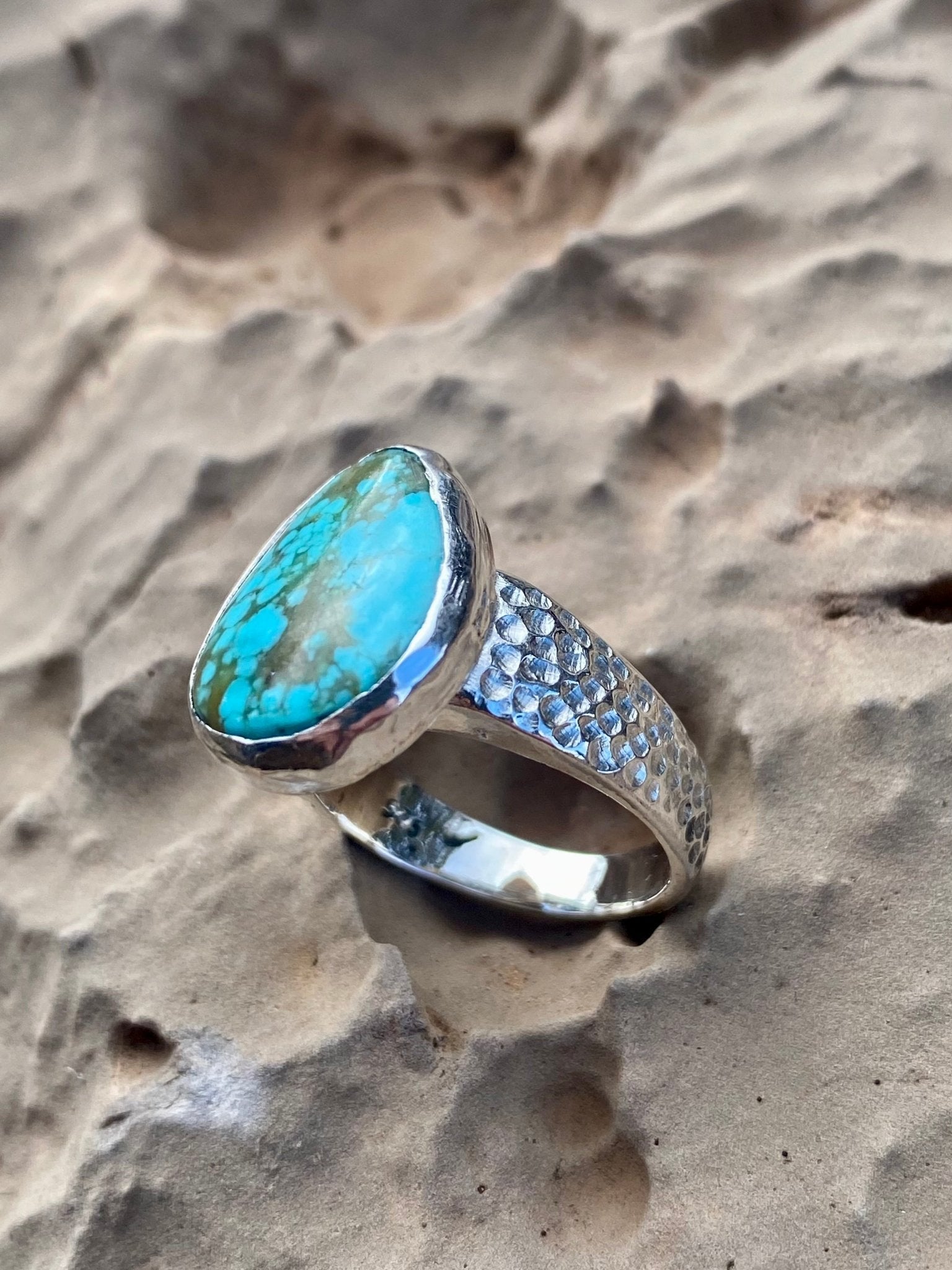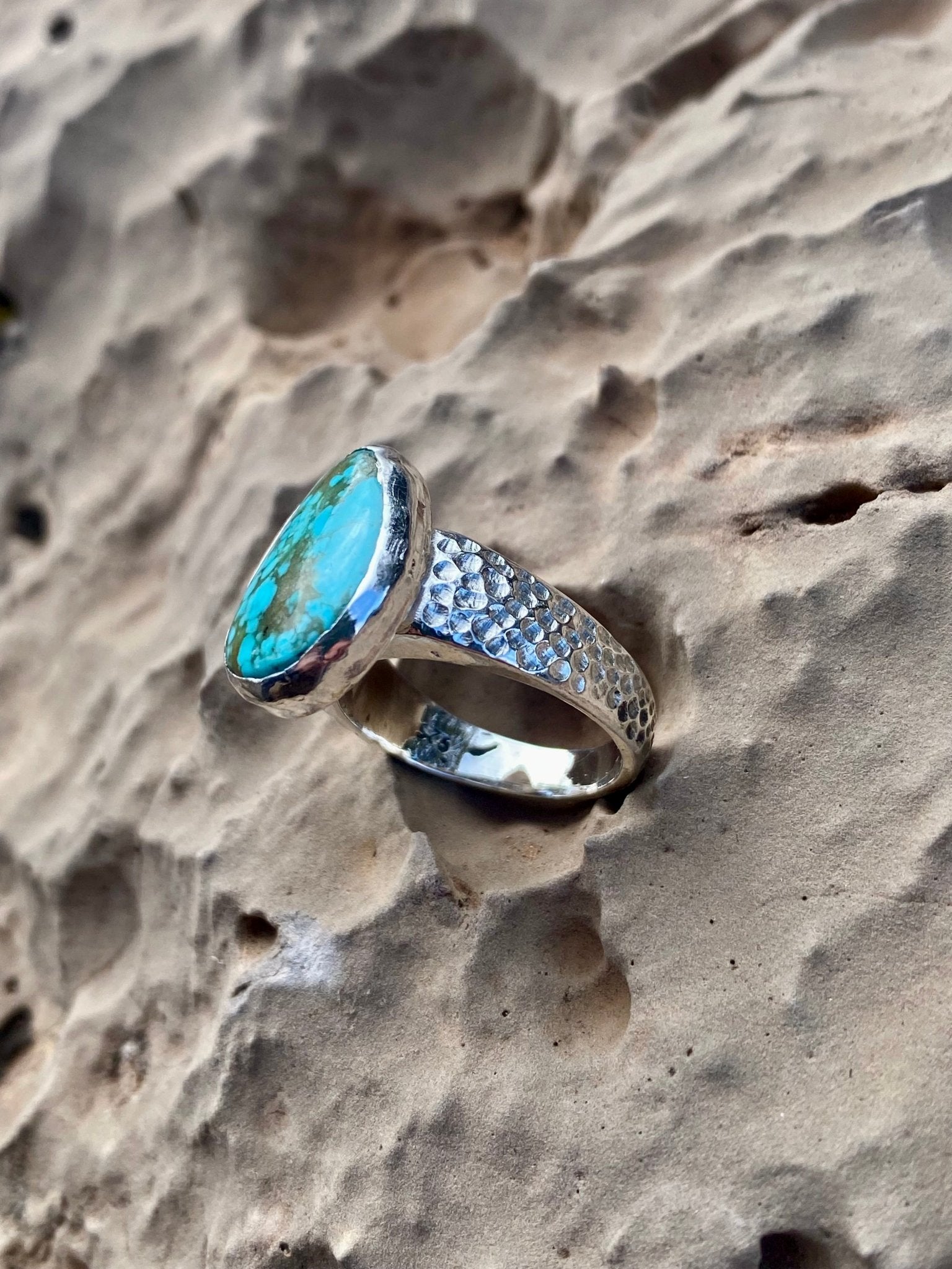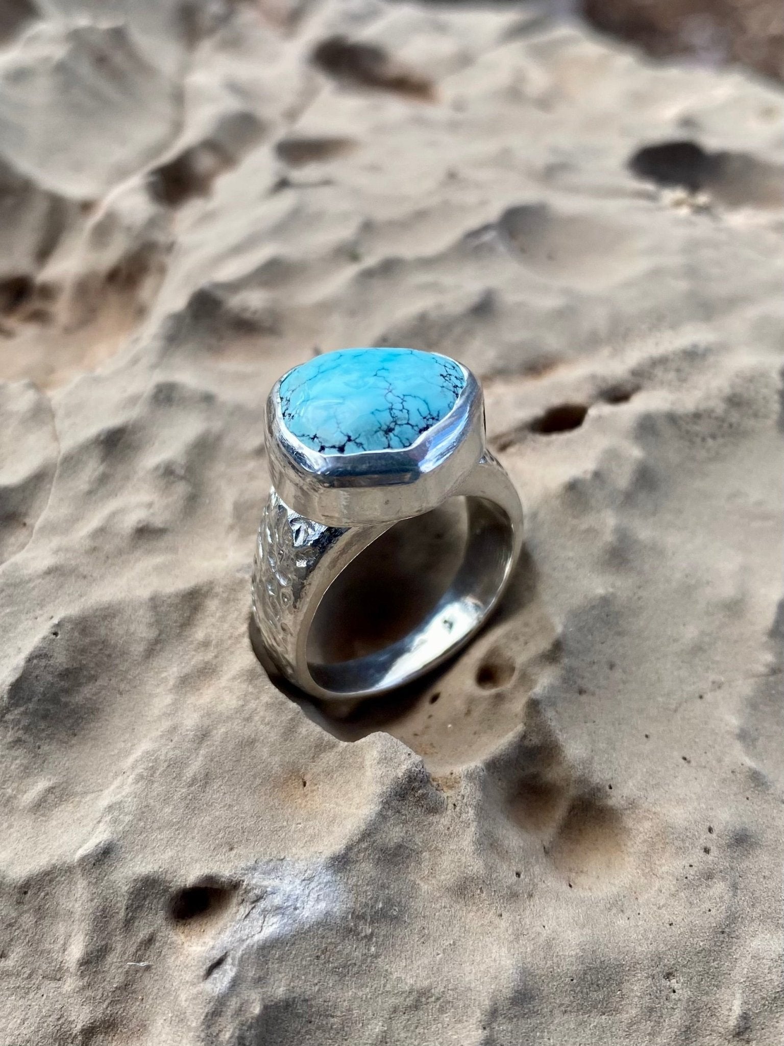Welcome to The Jewelry Shop. I'm Heather, a silversmith creating handcrafted jewelry in my Arizona studio. Every piece is made by hand using traditional techniques: sawn, soldered, hammered, and set one at a time. I specialize in ready-to-ship artisan jewelry, custom elk ivory keepsakes, and meaningful made-to-order designs. Whether you're looking for a bold turquoise statement or a subtle everyday piece, you're in the right place.