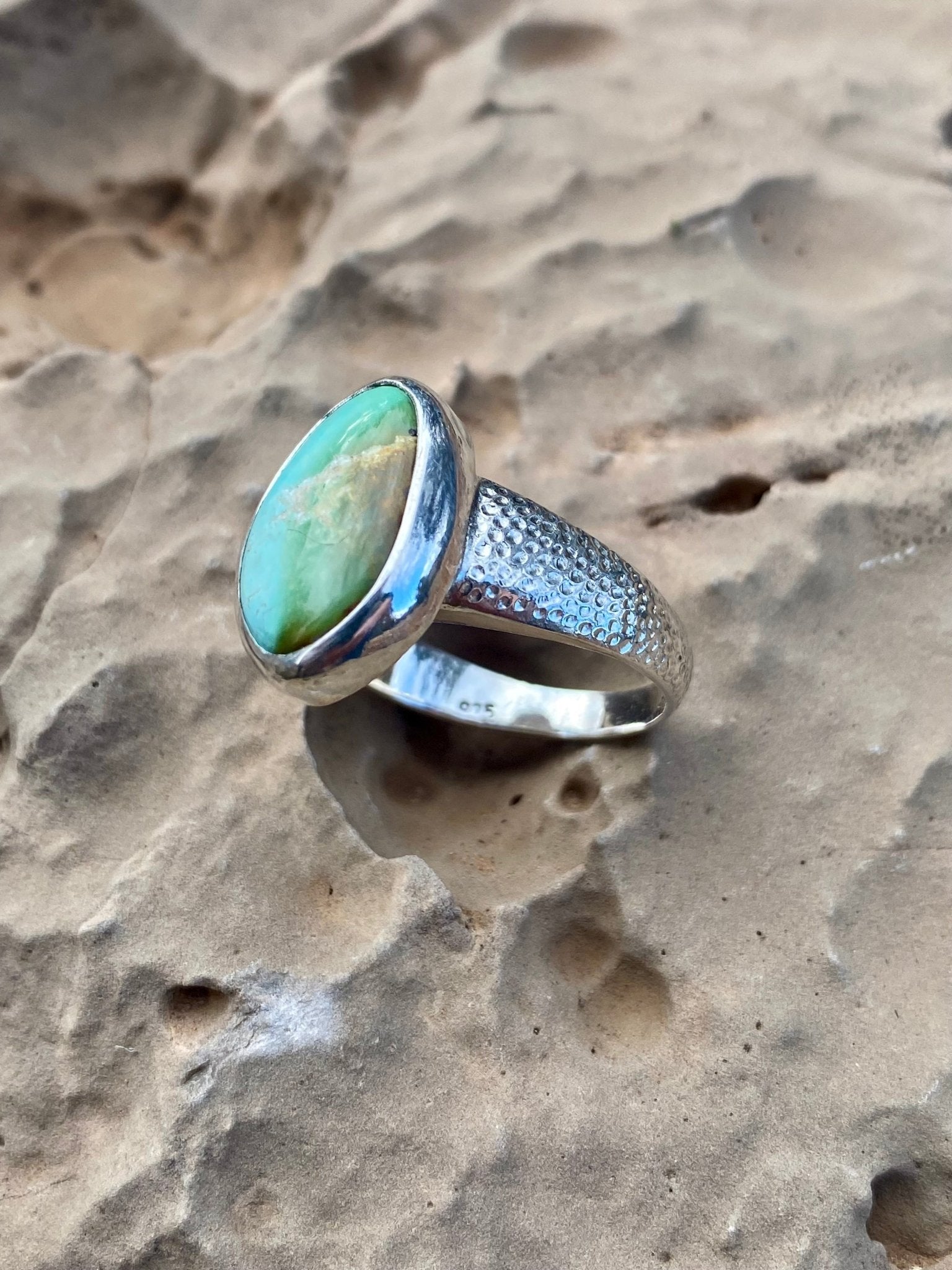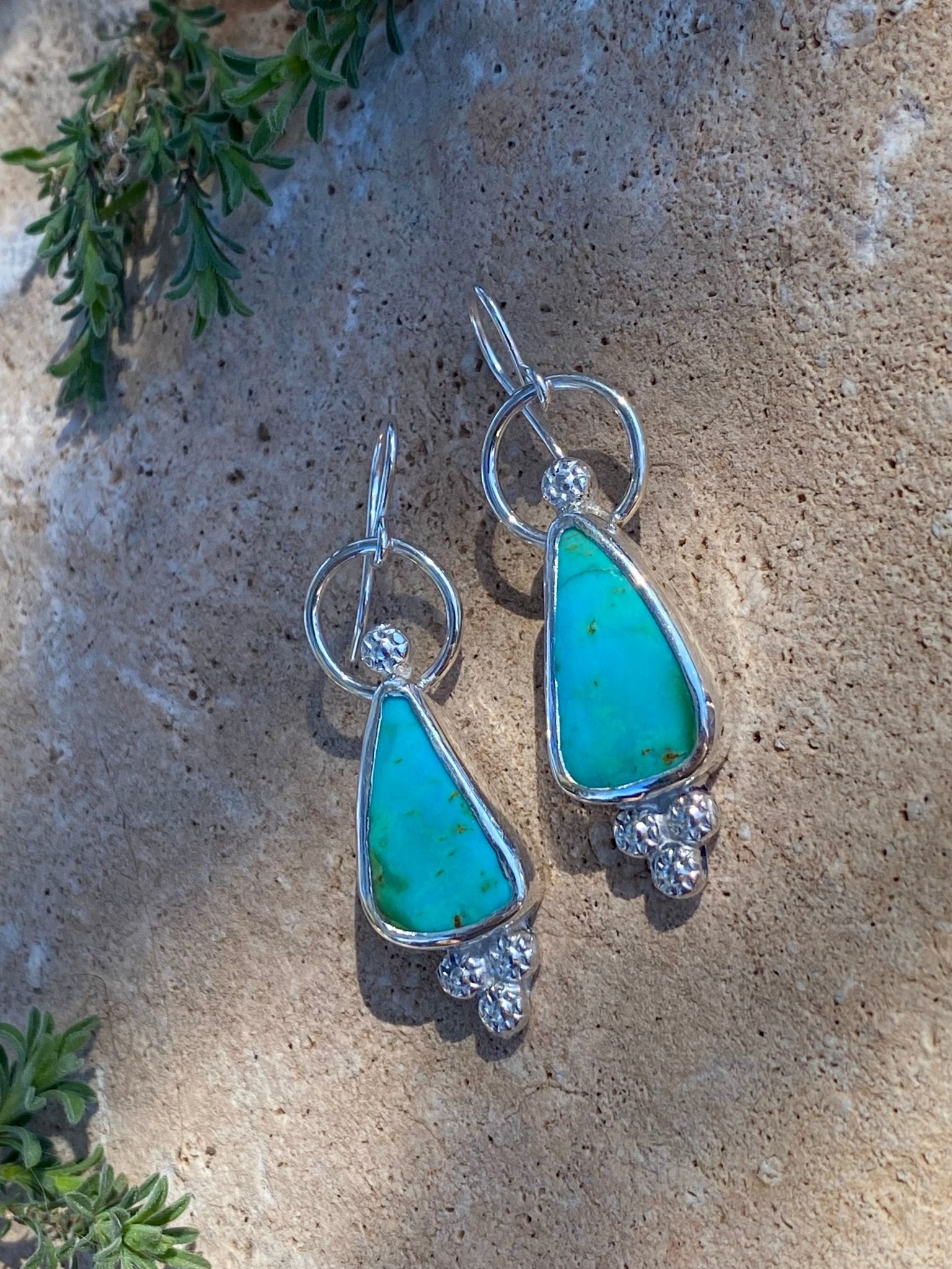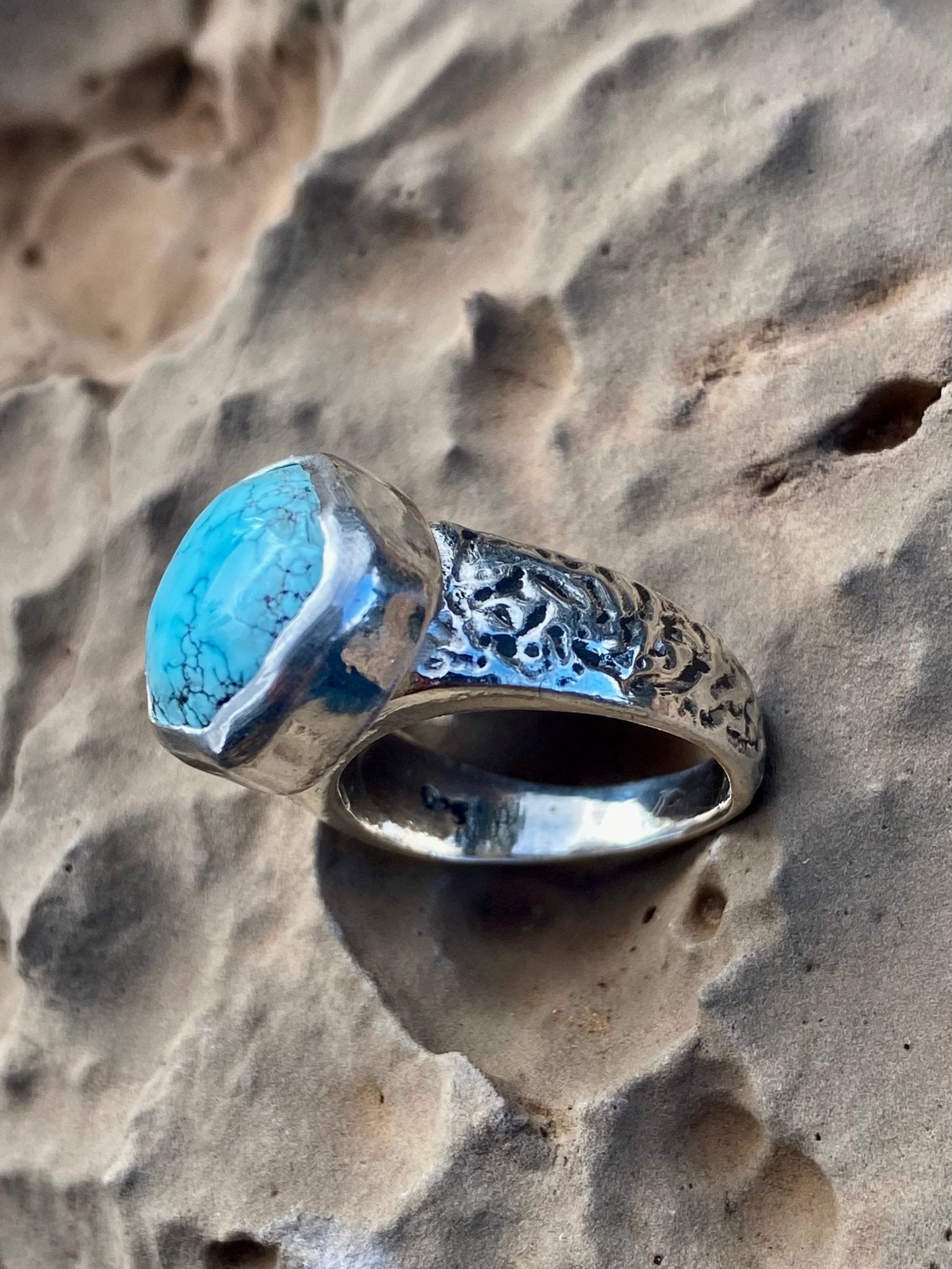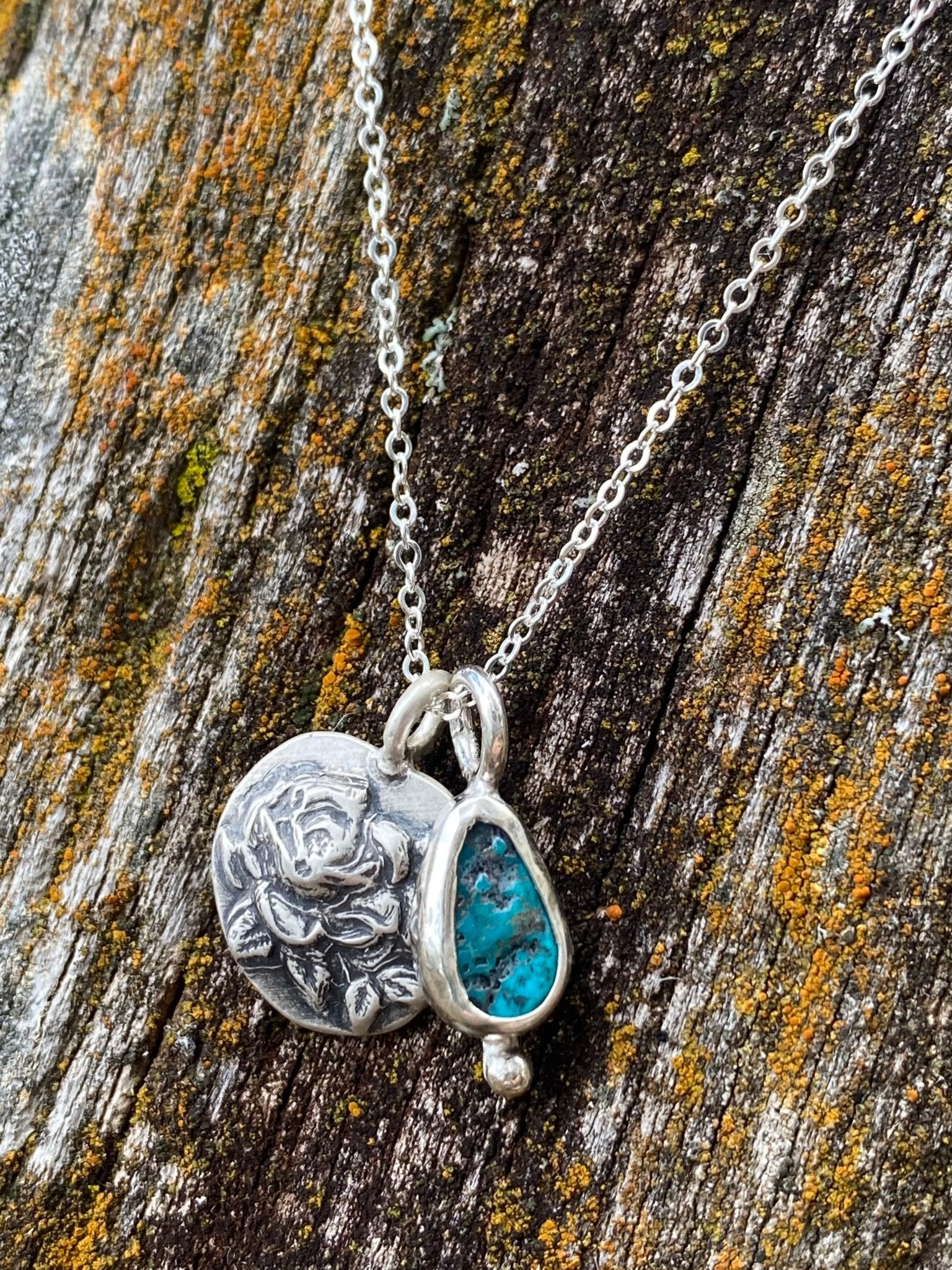 Welcome to The Jewelry Shop. I'm Heather, a silversmith creating handcrafted jewelry in my Arizona studio. Every piece is made by hand using traditional techniques: sawn, soldered, hammered, and set one at a time. I specialize in ready-to-ship artisan jewelry, custom elk ivory keepsakes, and meaningful made-to-order designs. Whether you're looking for a bold turquoise statement or a subtle everyday piece, you're in the right place.