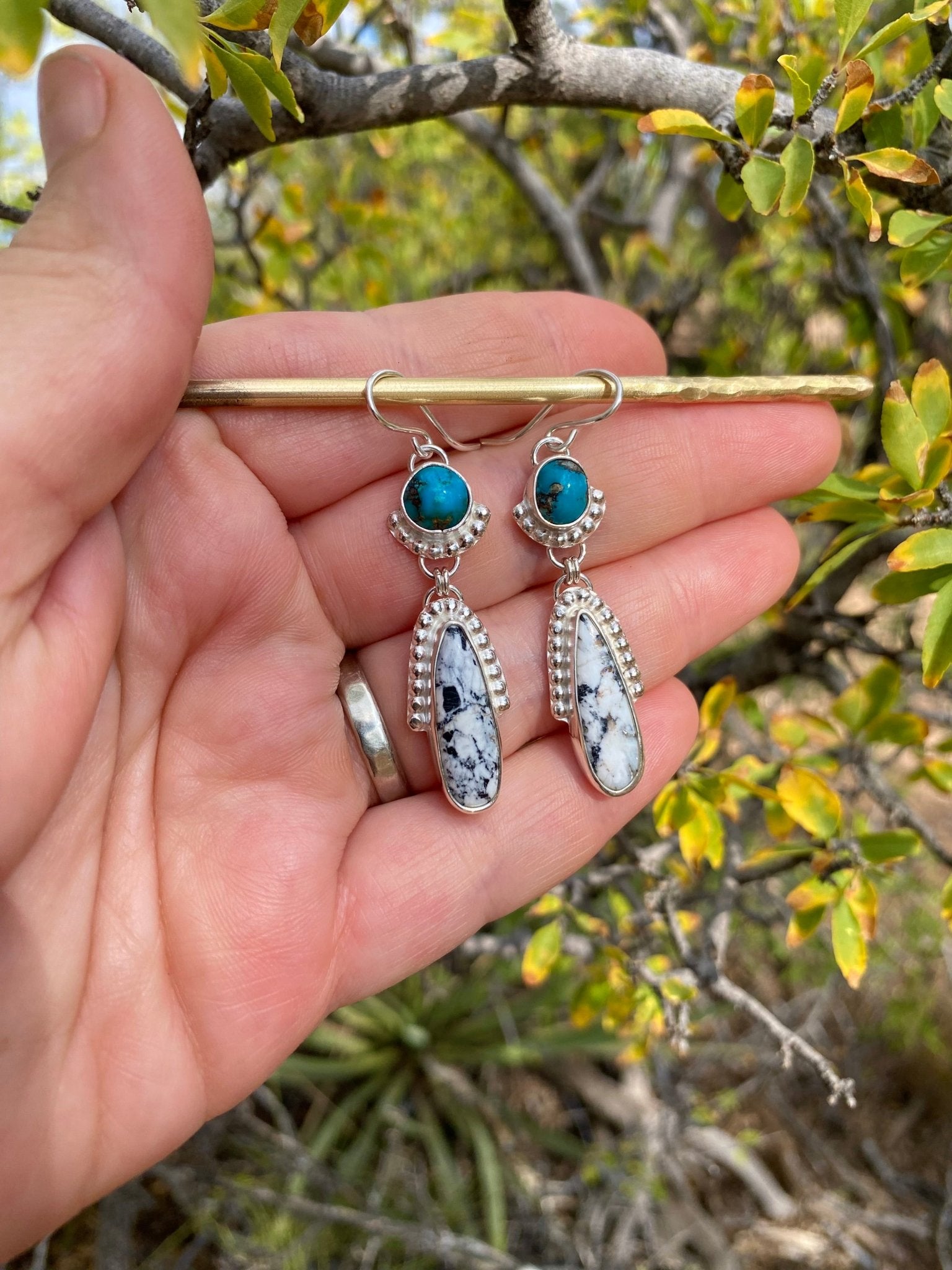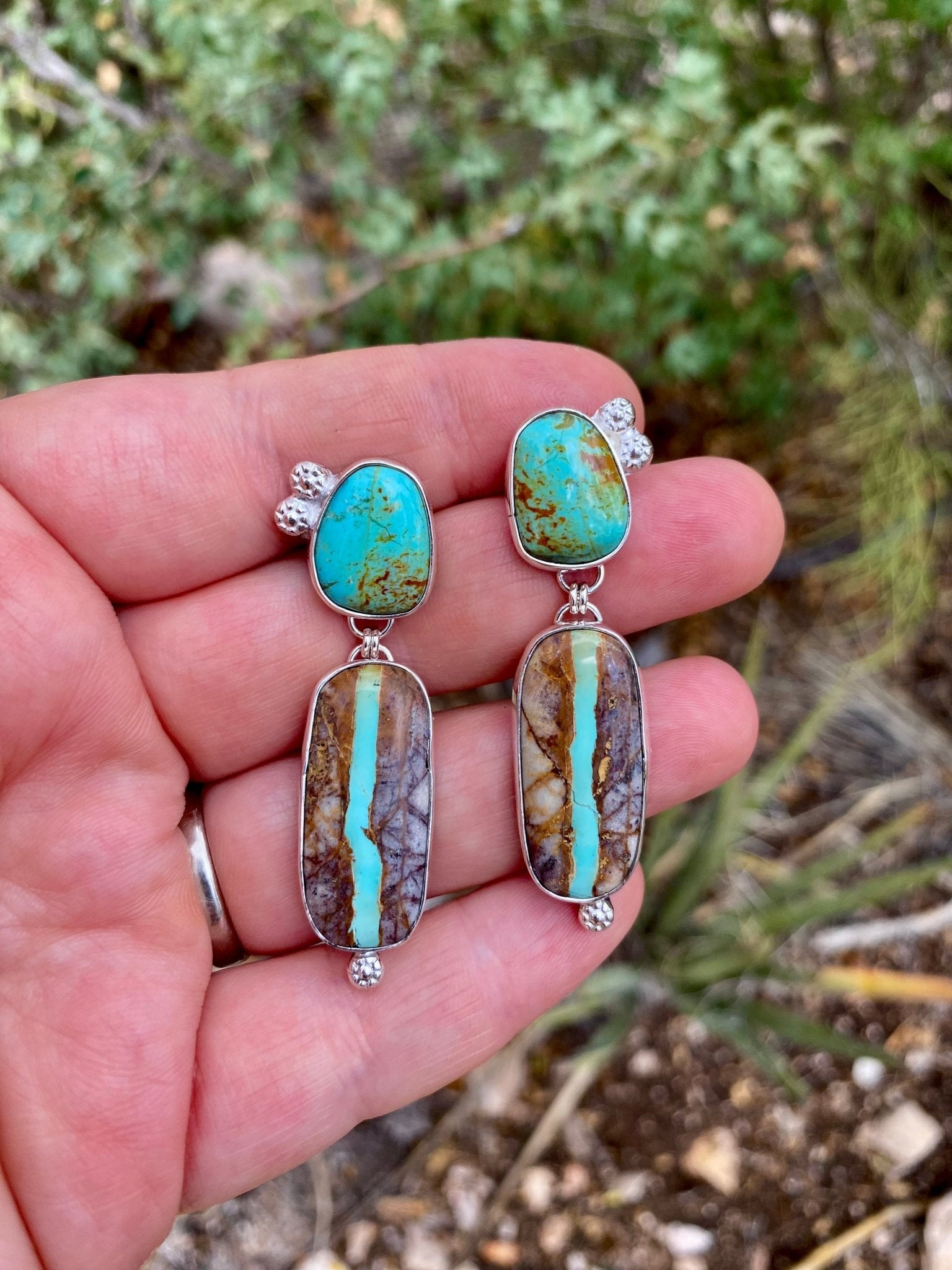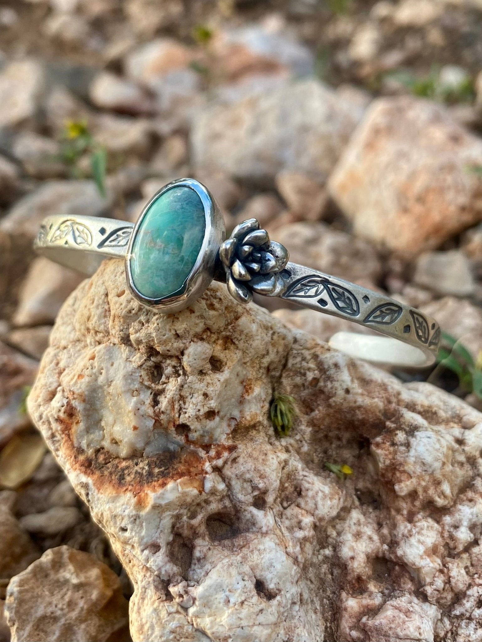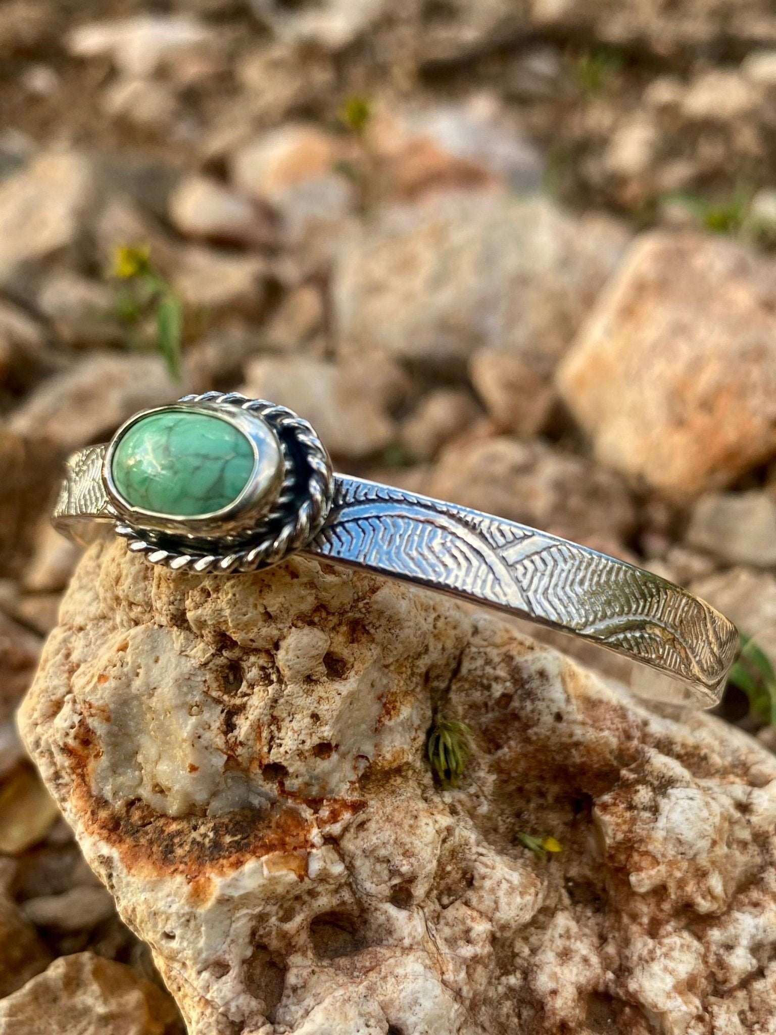 Welcome to The Jewelry Shop. I'm Heather, a silversmith creating handcrafted jewelry in my Arizona studio. Every piece is made by hand using traditional techniques: sawn, soldered, hammered, and set one at a time. I specialize in ready-to-ship artisan jewelry, custom elk ivory keepsakes, and meaningful made-to-order designs. Whether you're looking for a bold turquoise statement or a subtle everyday piece, you're in the right place.
