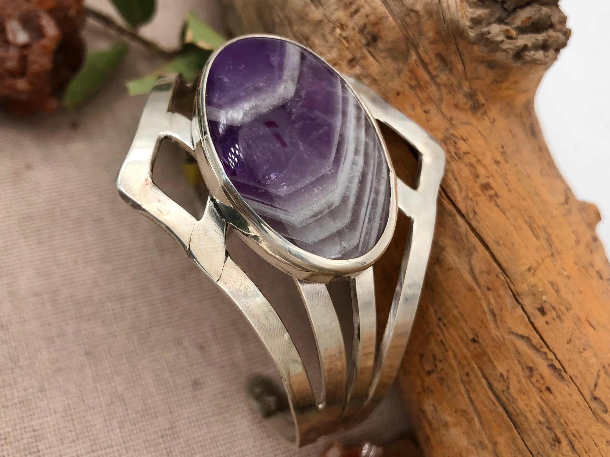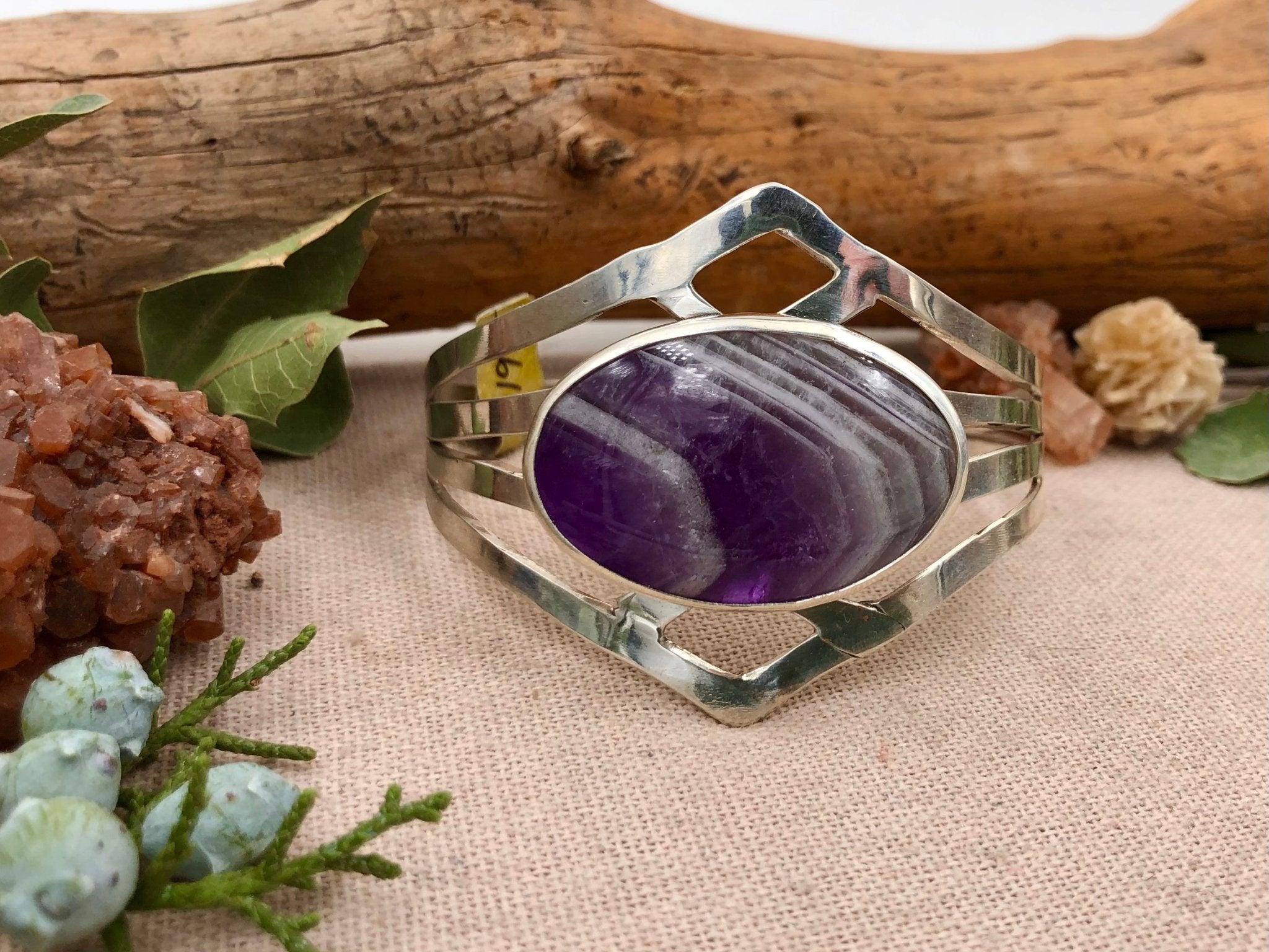Embossed stars with a dark antique patina and a two-tone Dendritic agate focal stone this sterling silver cuff is perfect for everyday wear! Sterling...