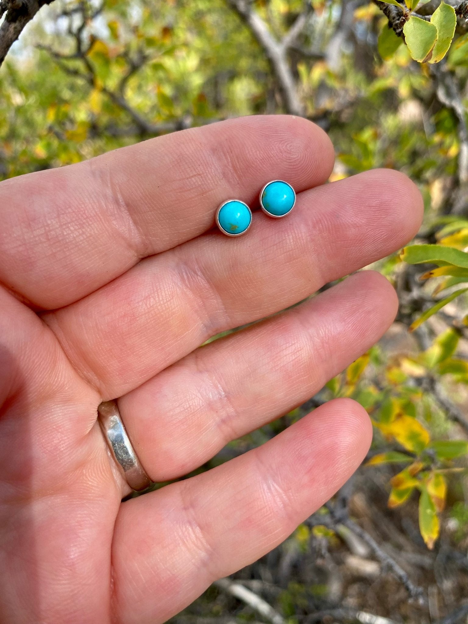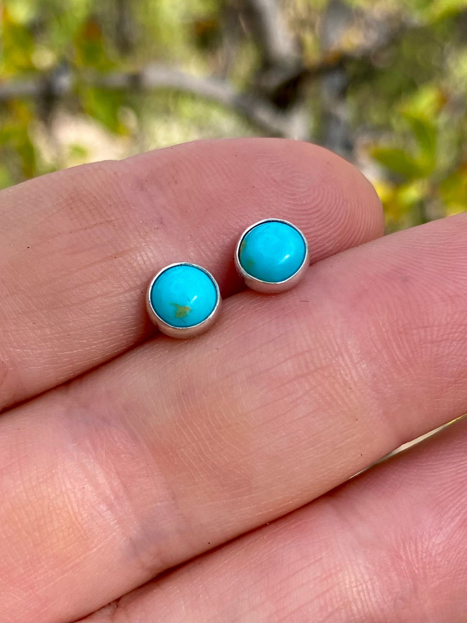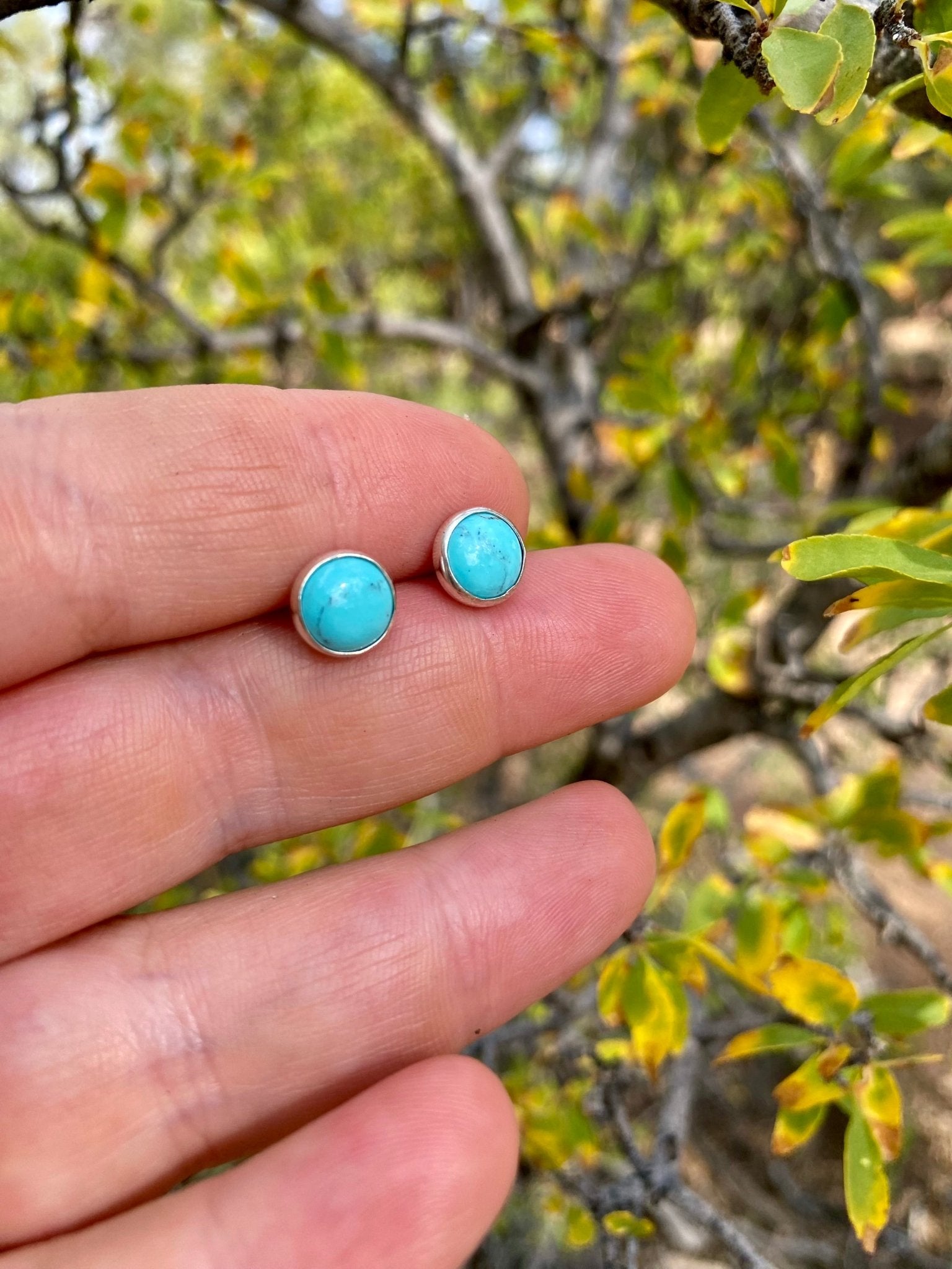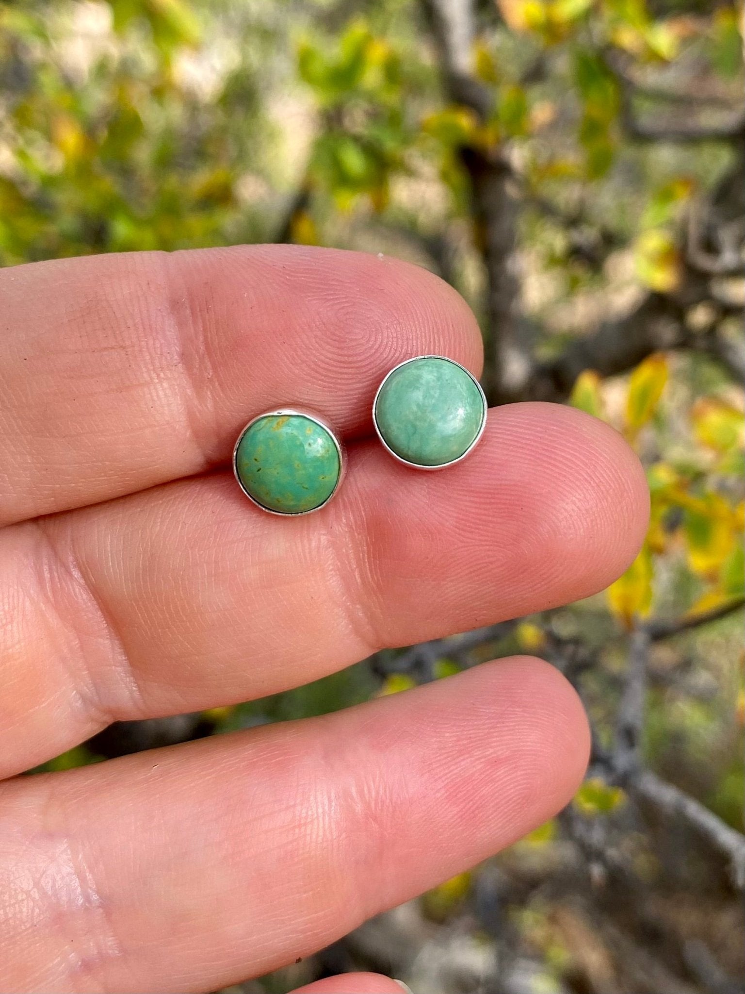 Timeless and versatile, these handcrafted turquoise stud earrings are made with solid sterling silver and set with vibrant American turquoise. Their classic design makes them...