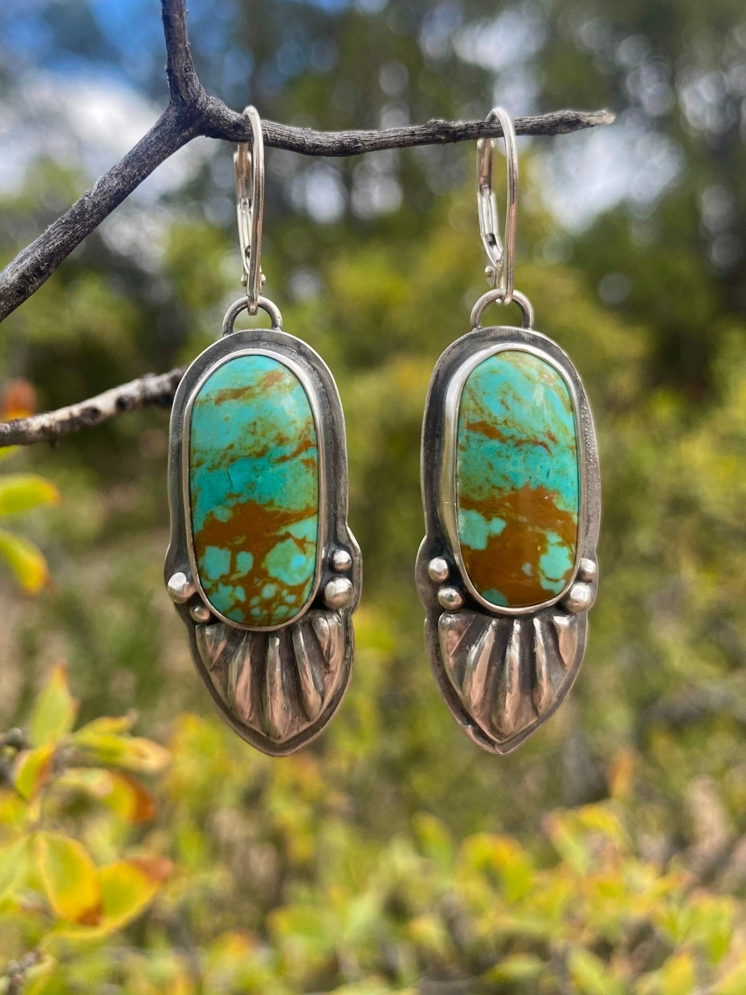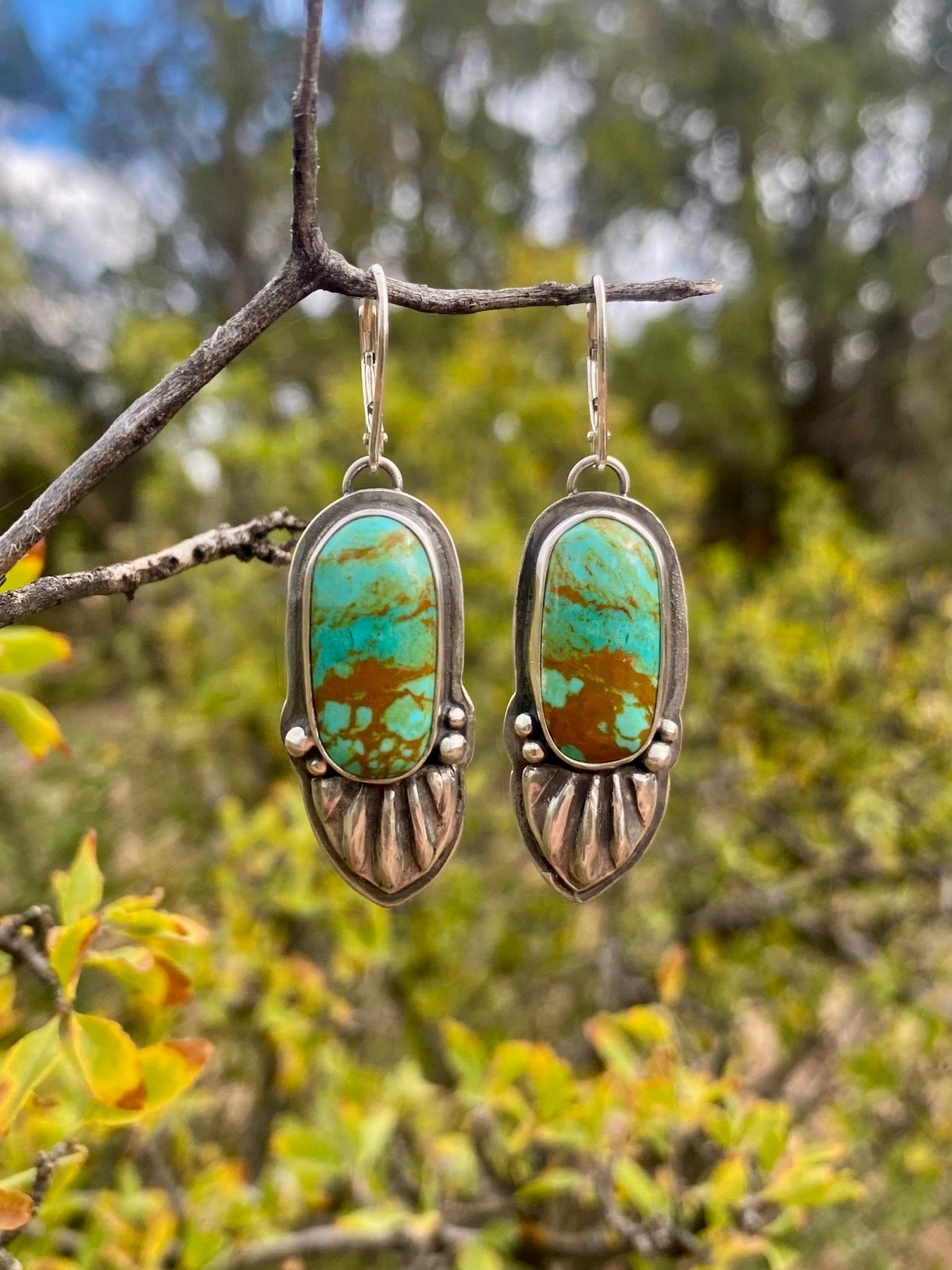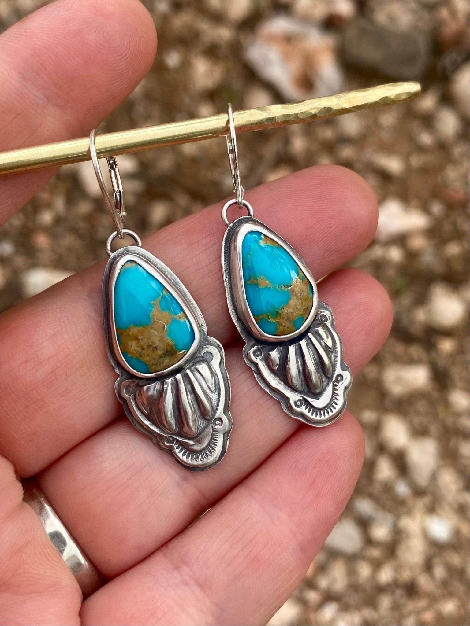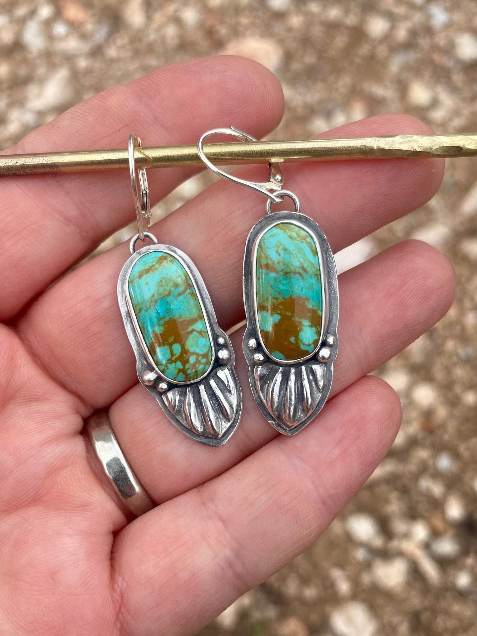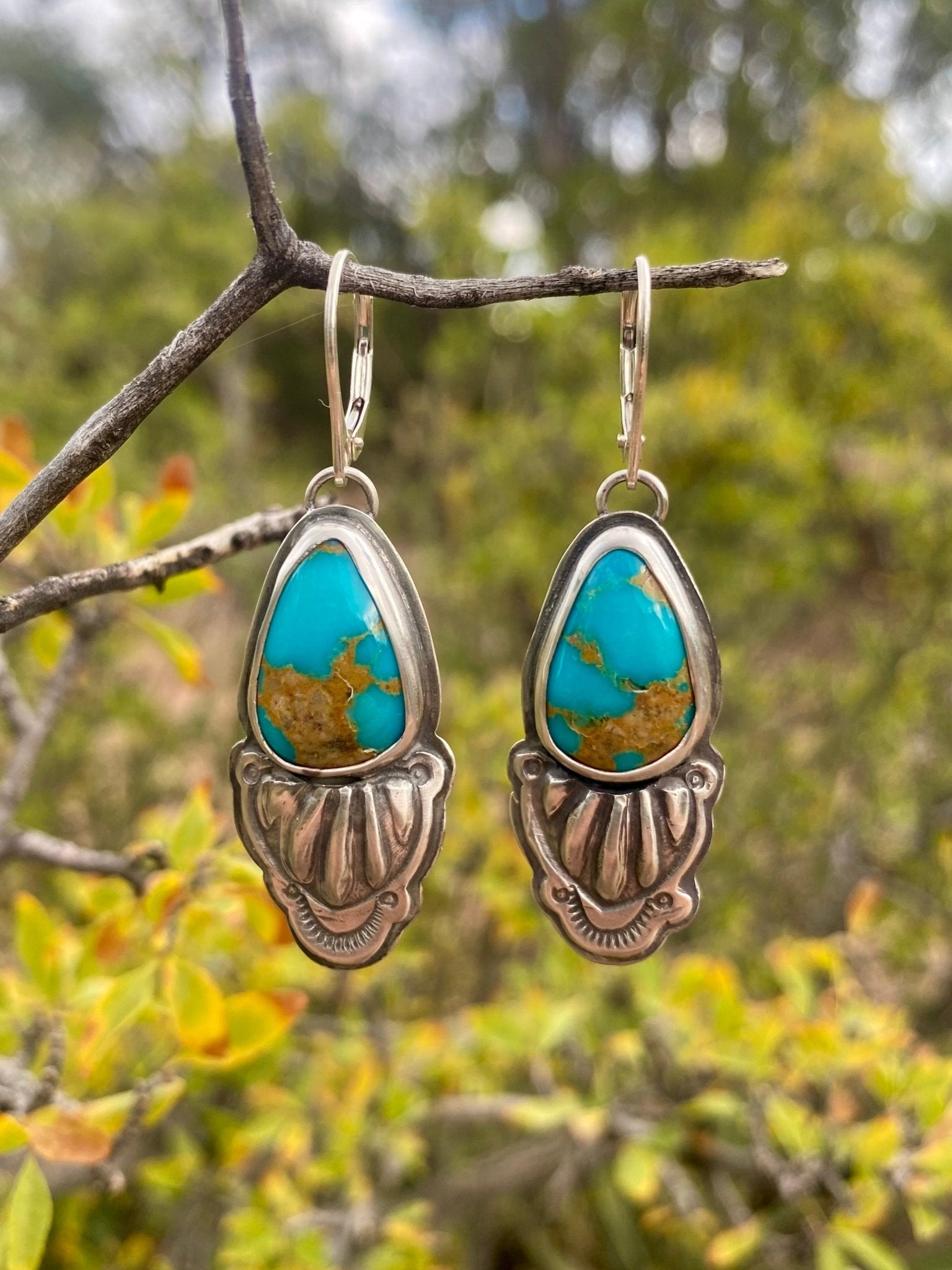 Each pair of Sonoran Rain Earrings captures the beauty of a fleeting desert storm — bright turquoise skies reflected in pools of silver. Hand-fabricated from...